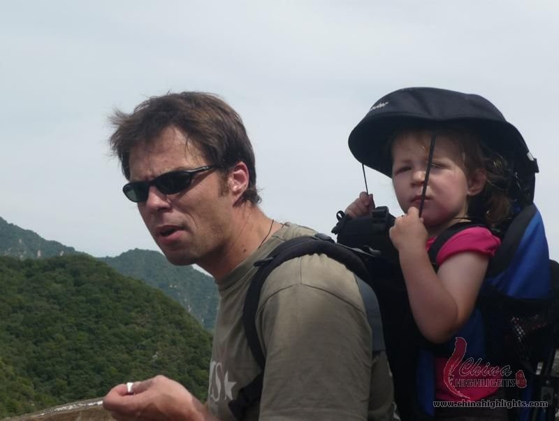 - Cool man lovely baby on the Great wall.