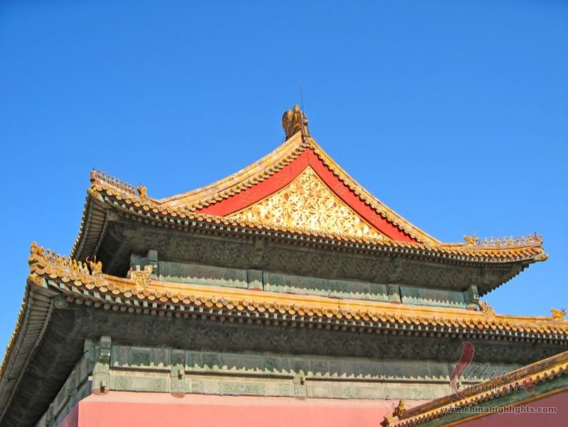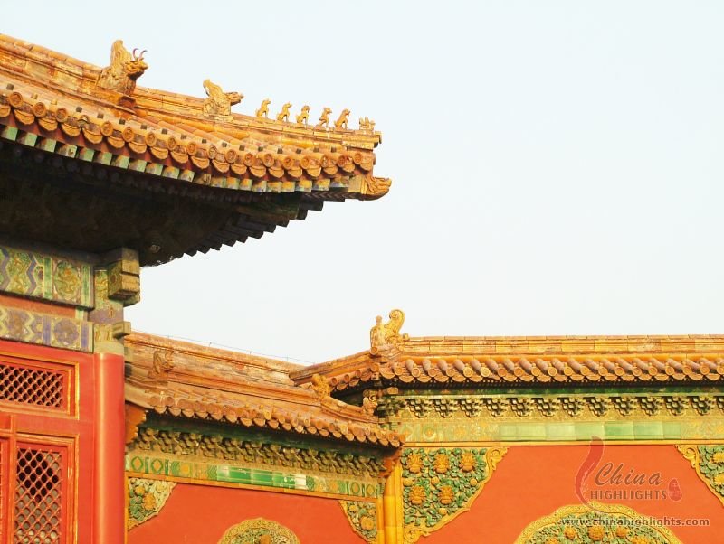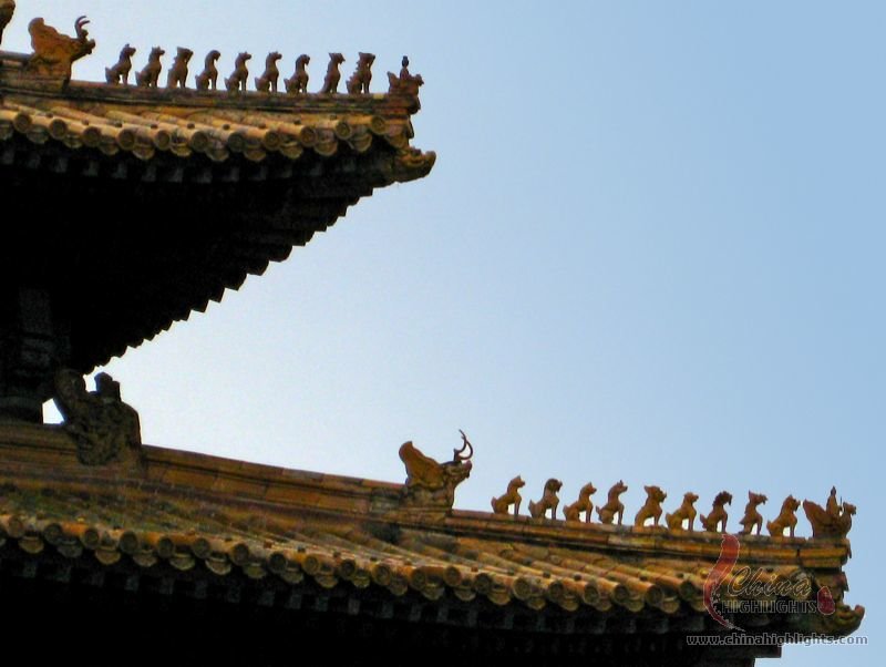 - The Forbidden CityThe sloping ridges of building roofs are decorated with a line of statuettes lead by a man riding a phoenix and followed by an imperial dragon.