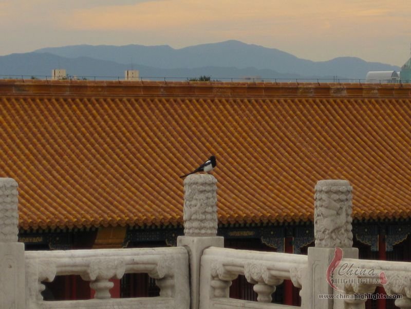 - BirdA little bird is standing on a pillar, looking at the Forbidden City.