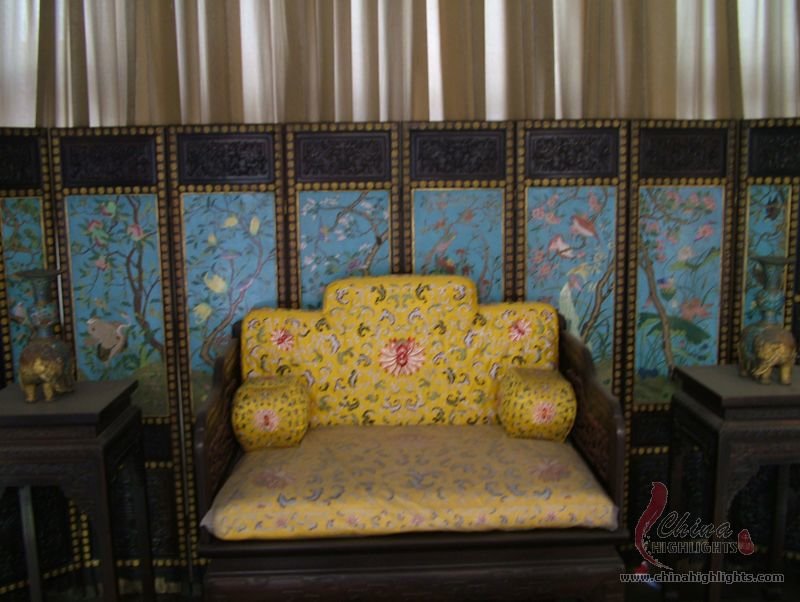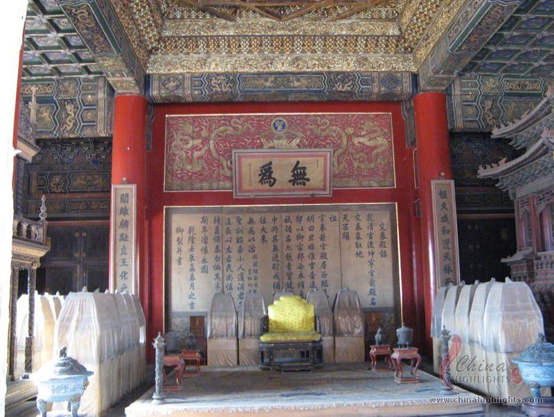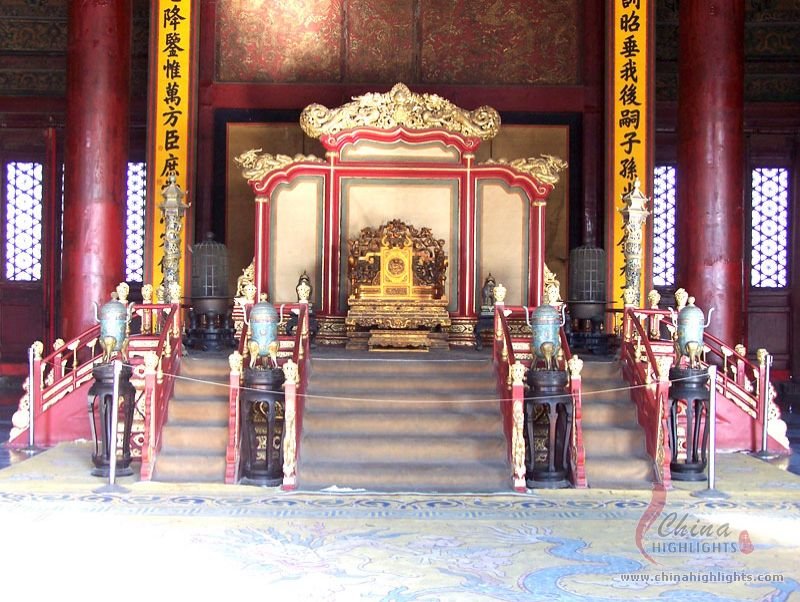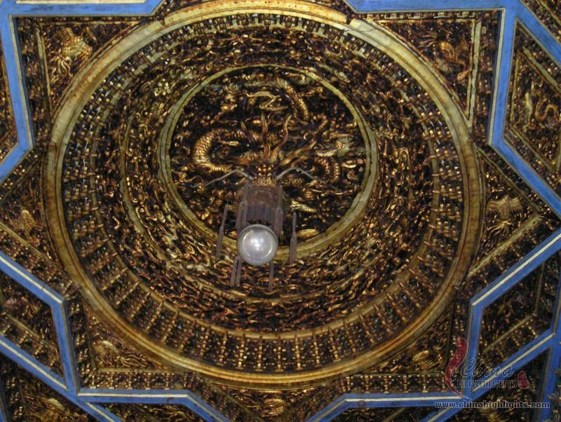 - The Forbidden CitySet into the ceiling directly above the throne is an intricate caisson decorated with a coiled dragon, from the mouth of which issues a chandelier-like set of metal balls.