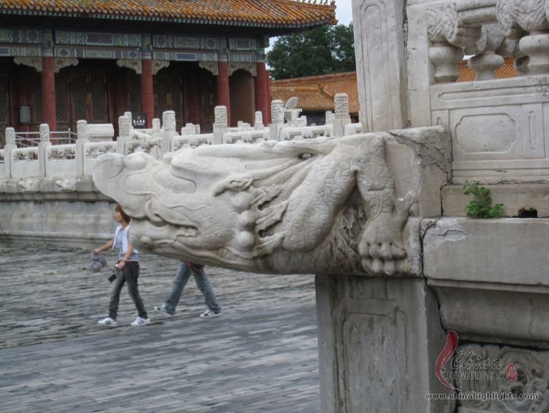 - The Forbidden CityMany stone dragons' heads on the balusters serve a practical purpose of drainage. On rainy days, over one thousand dragons on the terraces spout rainwater from their mouths at the same time.